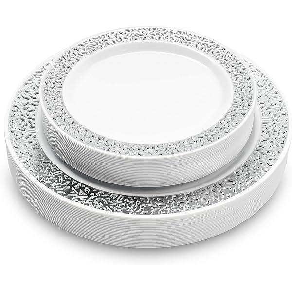 WHITE PLASTIC PLATE WITH SILVER TRIM 10"